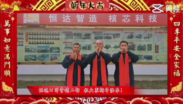 在此新春到來之際,南通恒達公司董事長崔恒全先生攜全體員工祝大家:芝麻開花節(jié)節(jié)高、百尺竿頭日日升、前程似錦、大展宏圖、萬事如意、心想事成!